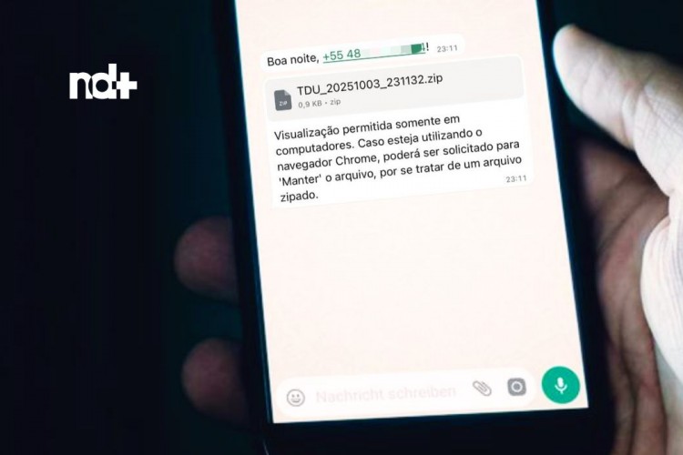 Segundo a Tecnomundo, o golpe começa quando a vítima recebe uma mensagem de phishing vinda de um contato conhecido, que já foi infectado. A mensagem traz um anexo zip com nomes sugestivos, como “RES-20250930_112057.zip” ou “ORCAMENTO_114418.zip”, que se passam por comprovantes de pagamento ou orçamentos.